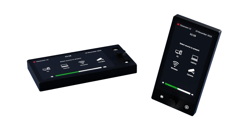 - Various sizes of tabletop, on-wall, and built-in wired touch panels