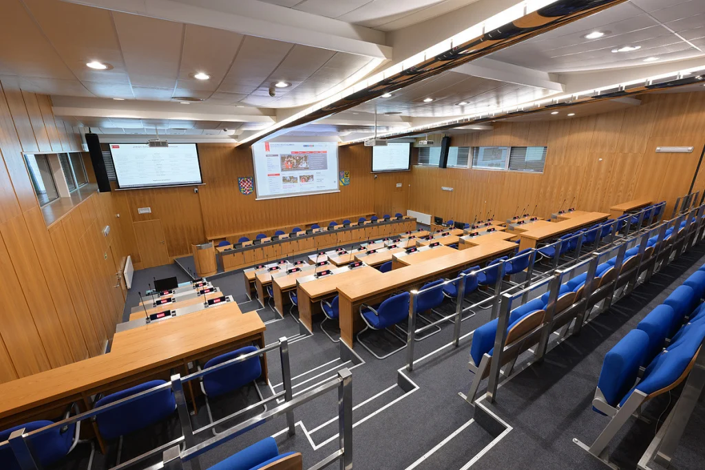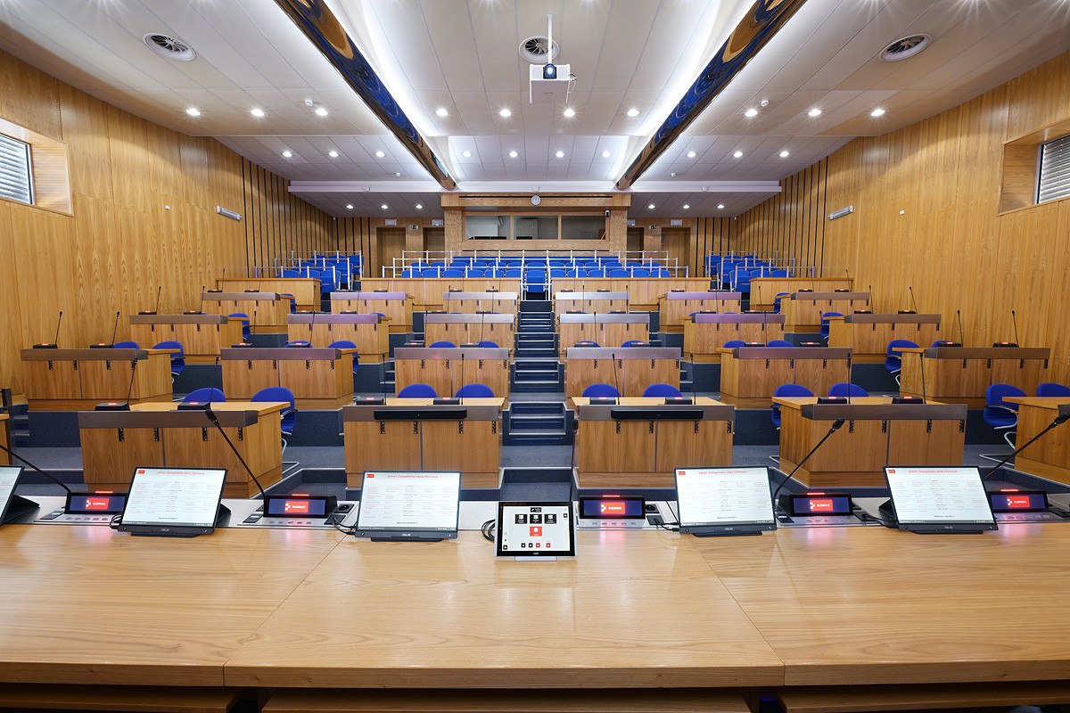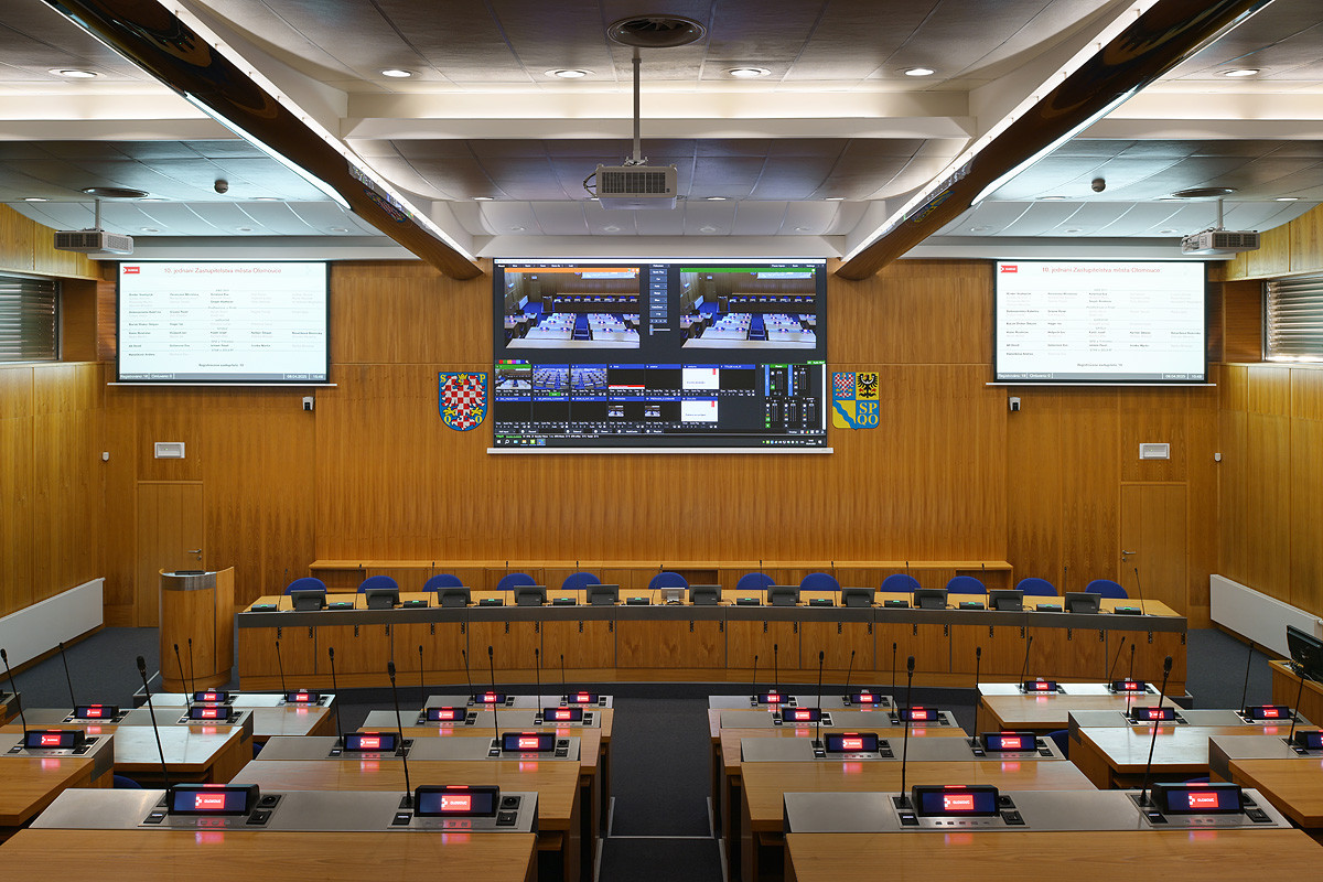Po téměř dvou desetiletích se v hlavní zasedací místnosti rady města olomoucké radnice prošla zásadní modernizací, aby odpovídala požadavkům dnešní hybridní správy. Cílem bylo vytvořit prostor, který podporuje osobní i vzdálenou účast, zjednodušuje složité AV operace a zajišťuje plynulé a intuitivní ovládání každého zasedání.