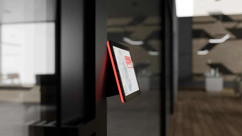 Independiente o fijado con tornillos, ideal para escritorios y mostradores de recepción.