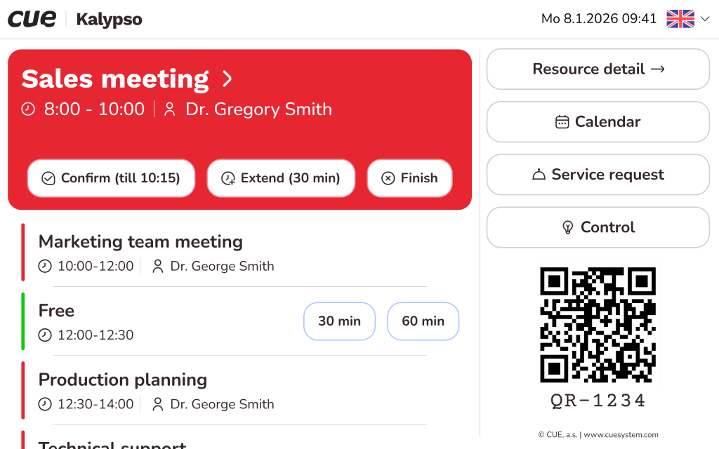 - Instant meeting actions as booking, extension, and early check‑out