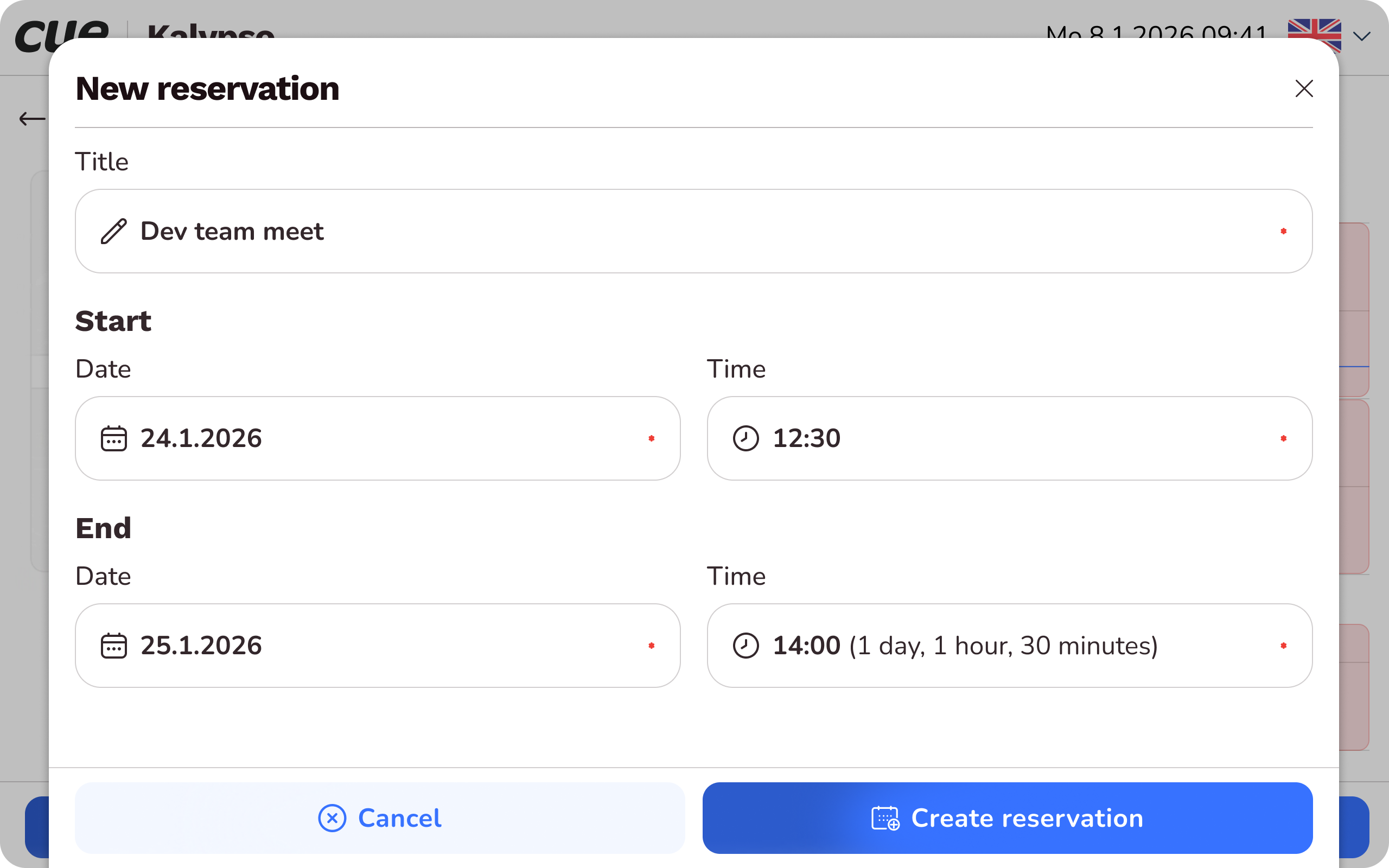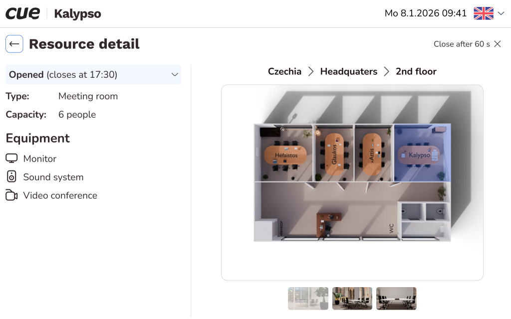 - Quick reservation for 30 / 60 / 90 minutes