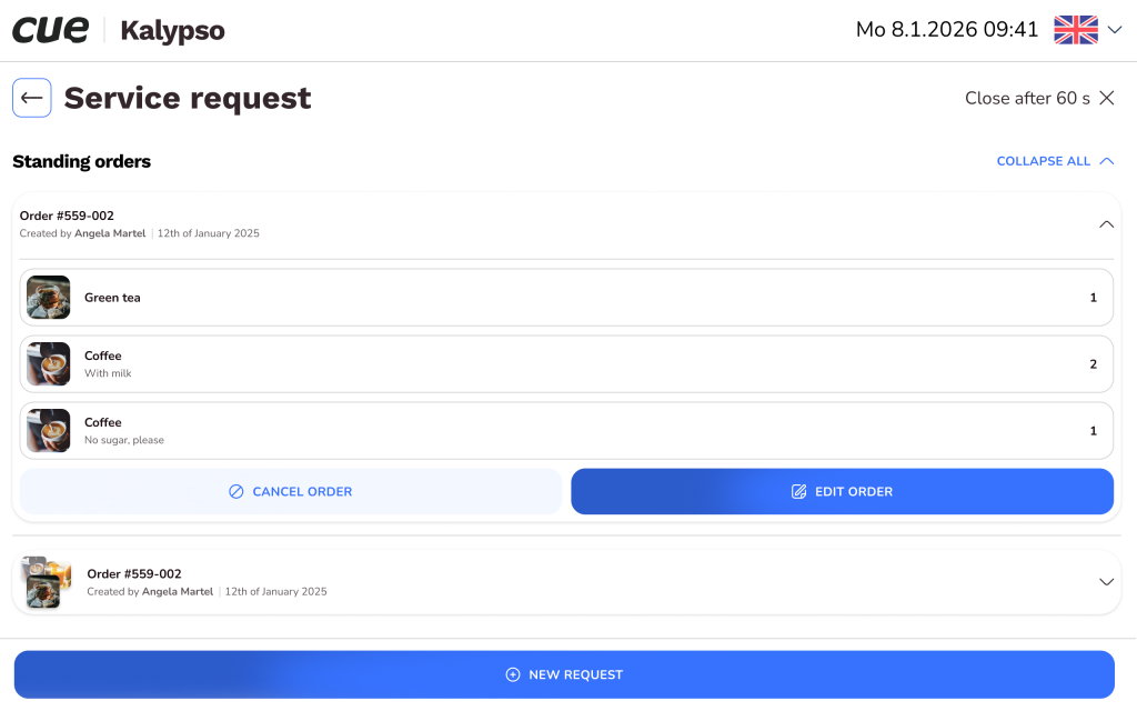 Allows requests for catering, cleaning and other services.