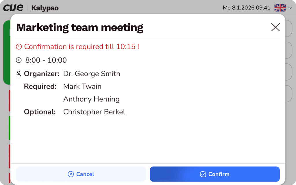 On-panel check-in confirm meetings to prevent unused reservations.