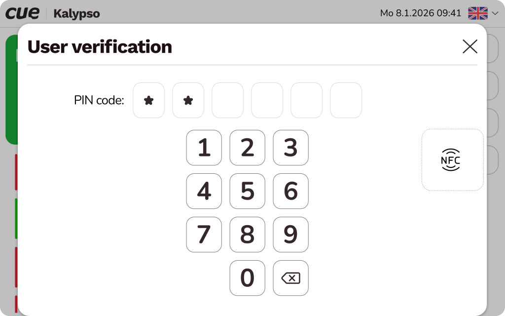 - User authentication using NFC card or PIN code